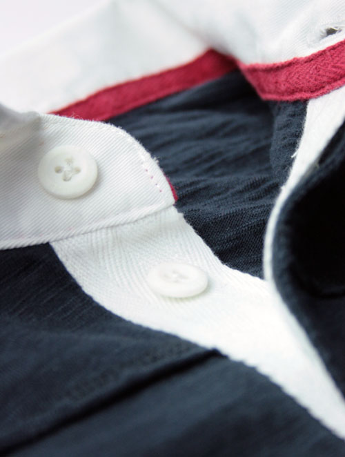 面料:大身100%棉特色竹节纱针织汗布;领口:100%棉磨毛纱卡