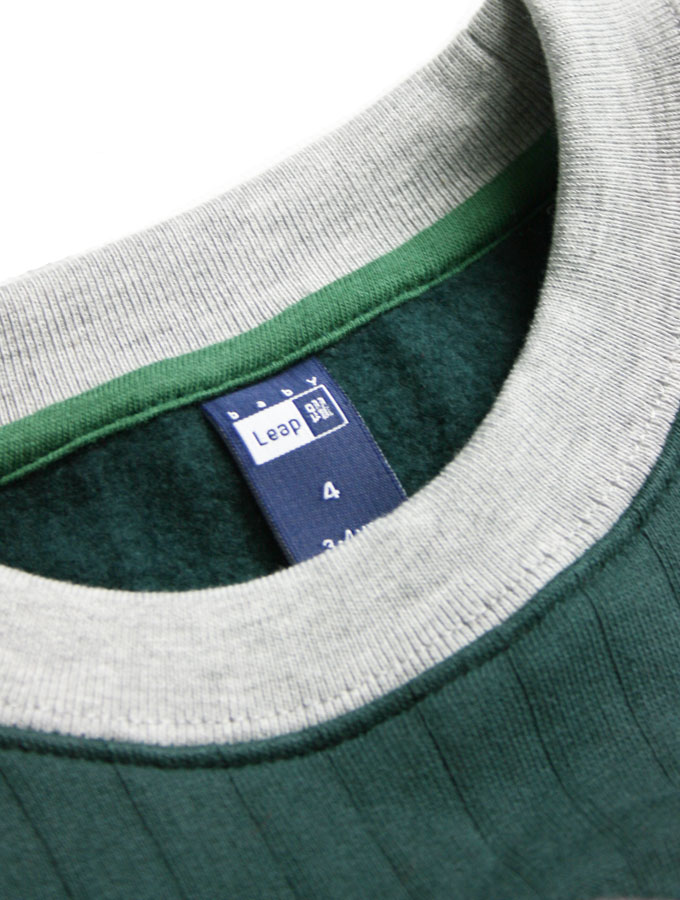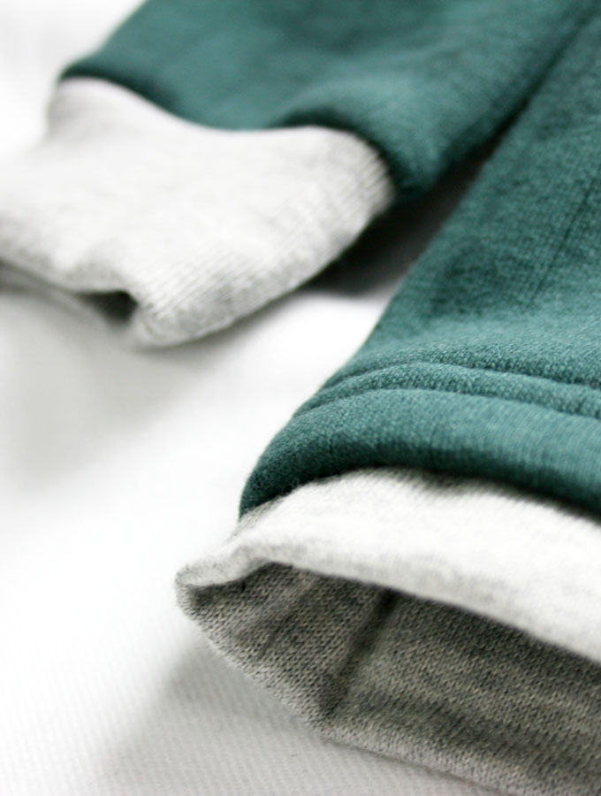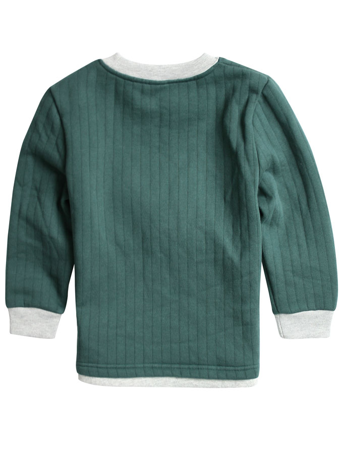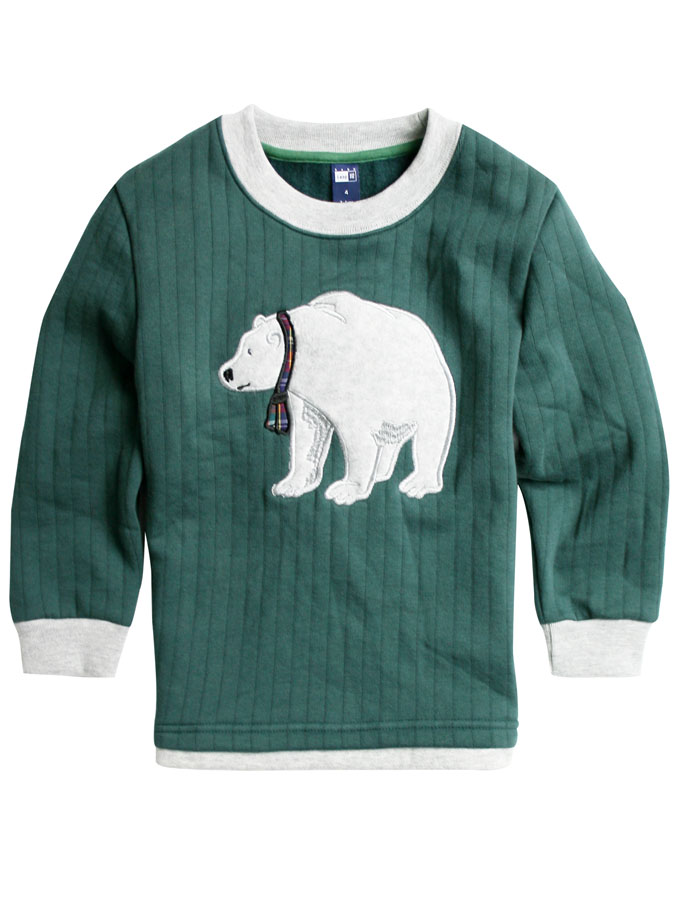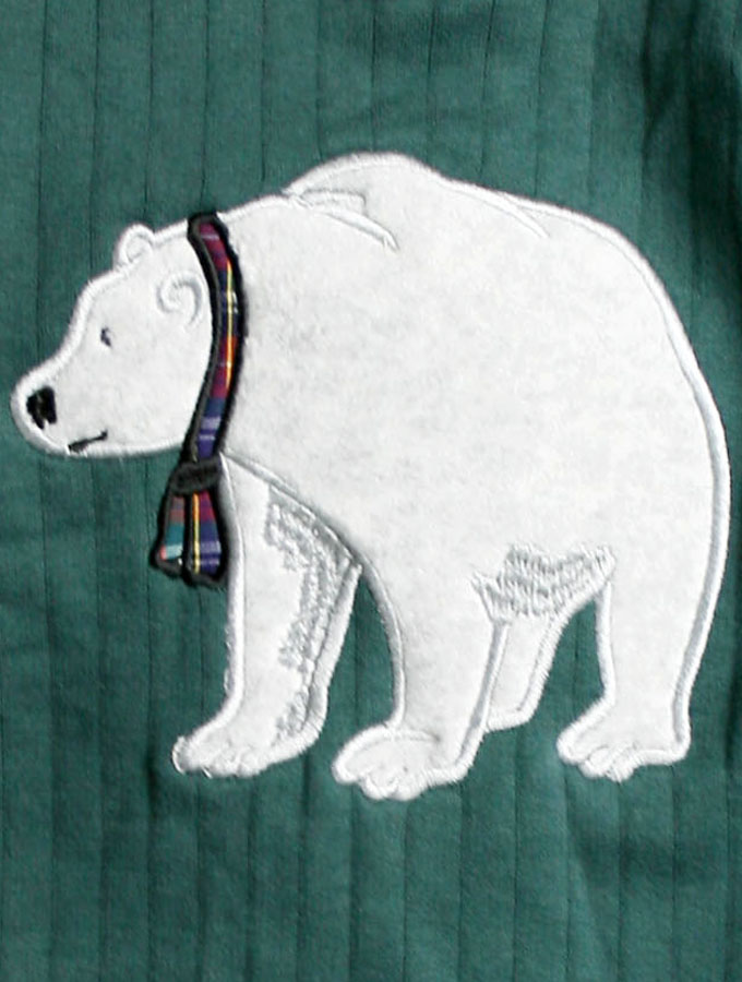 灰色撞色领口,袖口,下摆内贴边;逼真绒布贴布绣北极熊