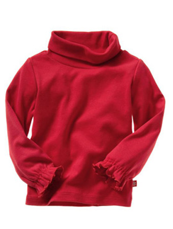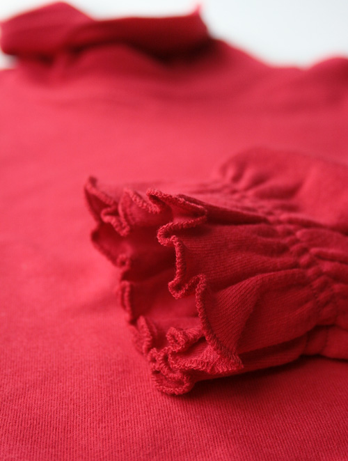 高领,配合袖口木耳边做法