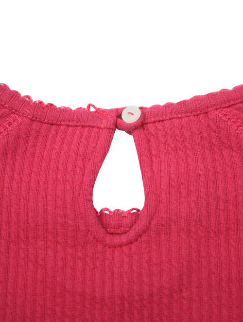 女婴圆领双层袖小马驹绣花T恤,后领开襟便于穿着,前片贴补造型印绣花