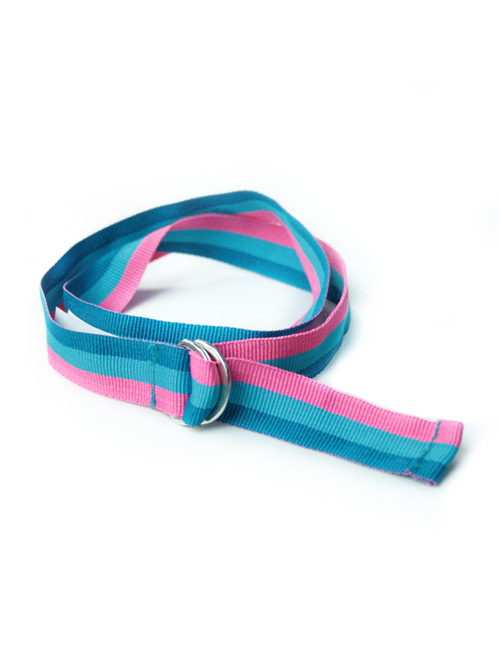 女婴夏季时尚彩虹条装饰腰带,金属双D字扣腰带头;