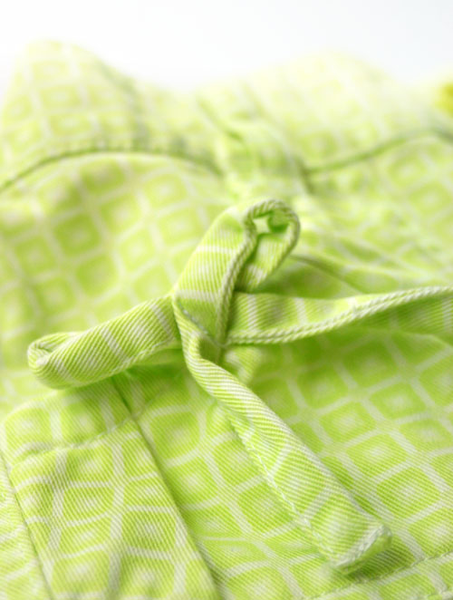 左右斜插袋,袋口褶皱装饰;后部两个迷你小袍袋;