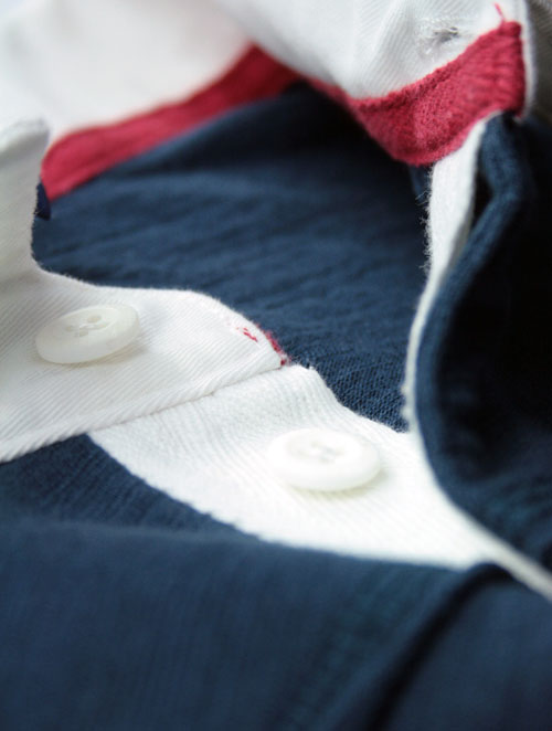 面料:大身100%棉特色竹节纱针织汗布;领口:100%棉磨毛纱卡