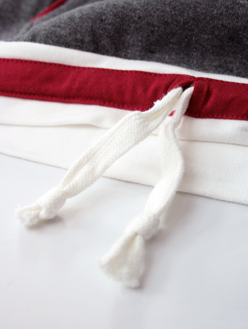 袋鼠斜插袋,撞色针织帽里;