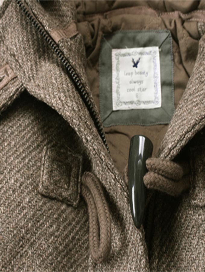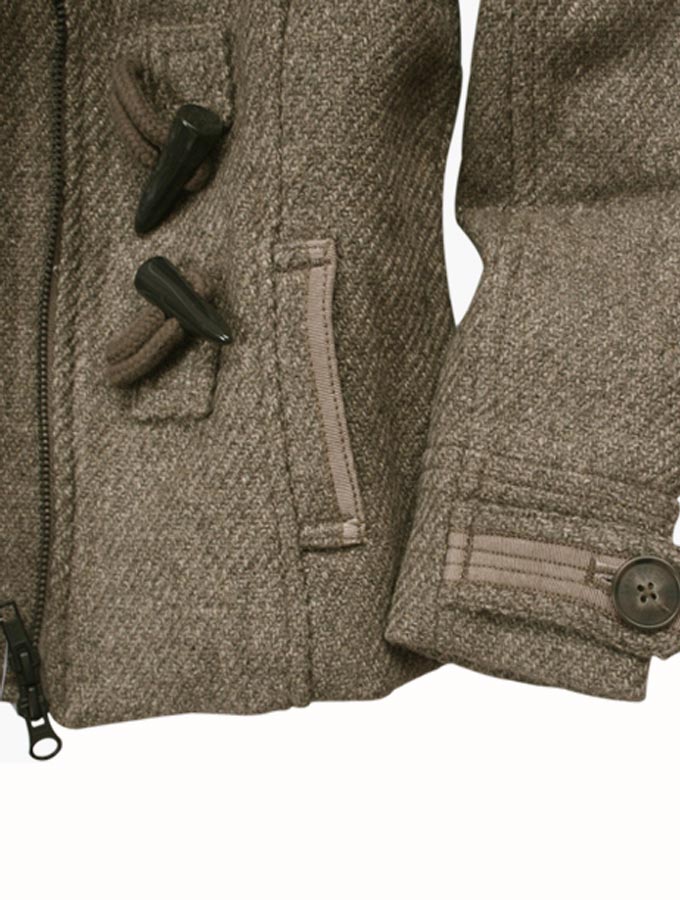 仿毛皮帽领可拆卸、金属YKK拉链开门进、配牛角扣