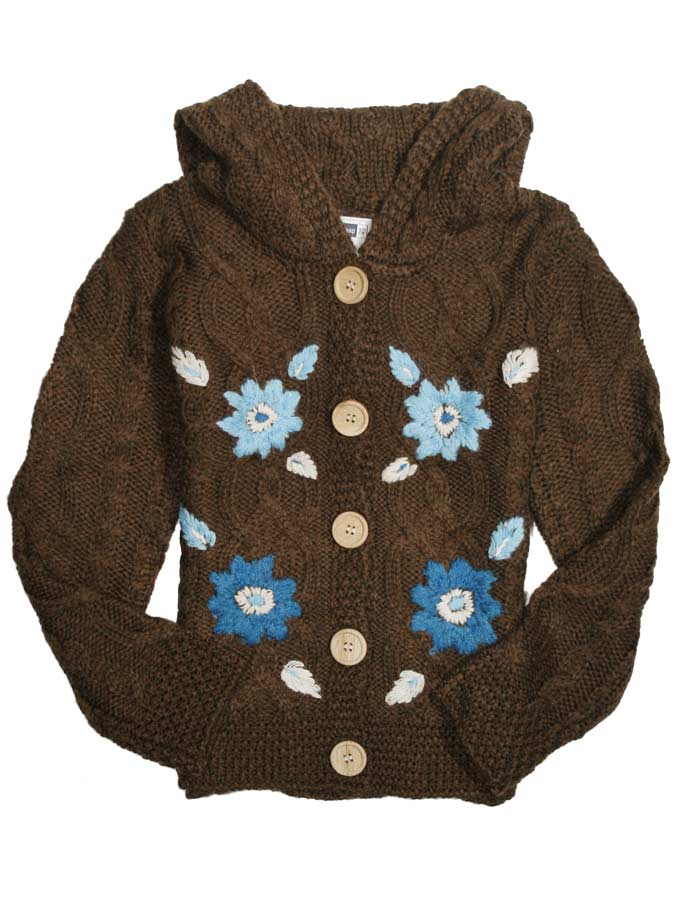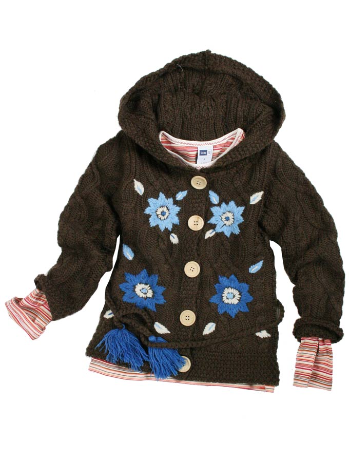 女童连帽对襟毛衣
