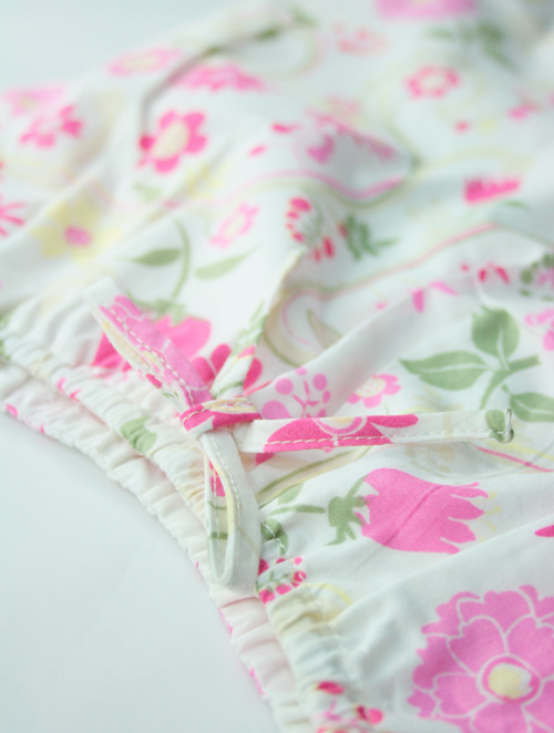 原身布吊带,可以调节长度(使用小型透明塑料日子扣调节),内里前片增加净色巴黎纱衬里;