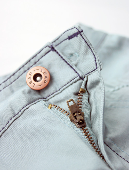 拉链开门襟;金属钮扣(刻字LEAP);可调节橡筋内腰;