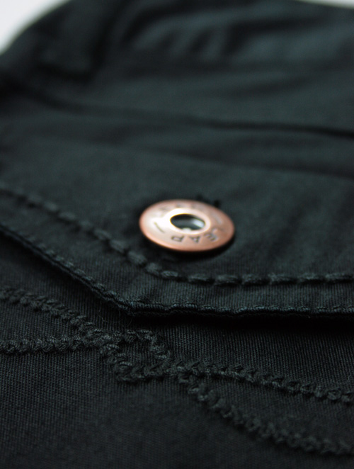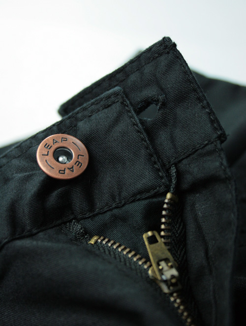 拉链开门襟;金属钮扣(刻字LEAP);可调节橡筋内腰;