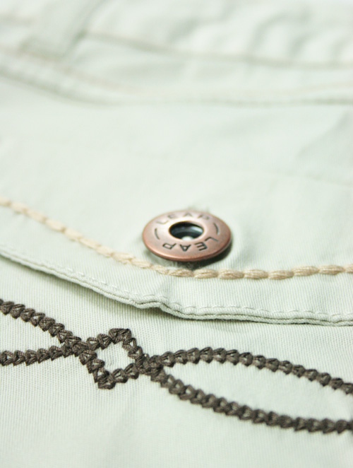 拉链开门襟;金属钮扣(刻字LEAP);可调节橡筋内腰;